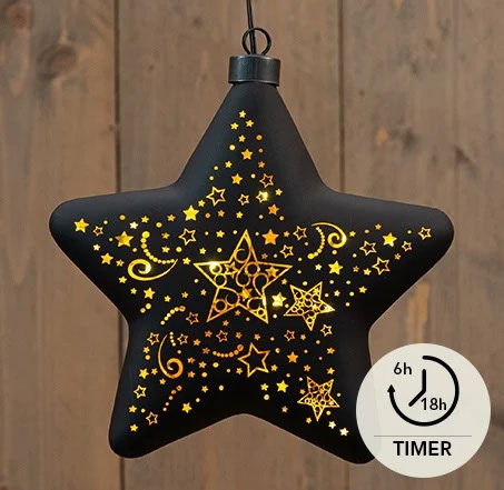 Glasstern Sterne 10er LED 19 cm - Schwarz/Gold
