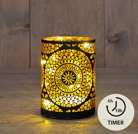 Glaszylinder Marrakesch - Schwarz/Gold D9H12 cm