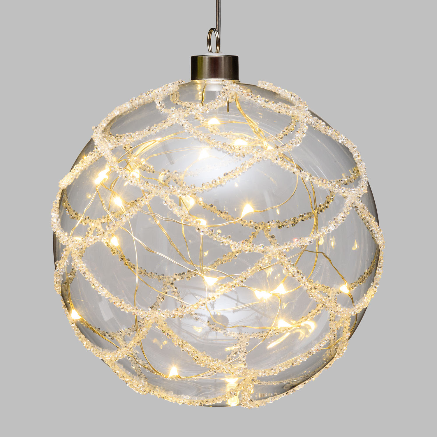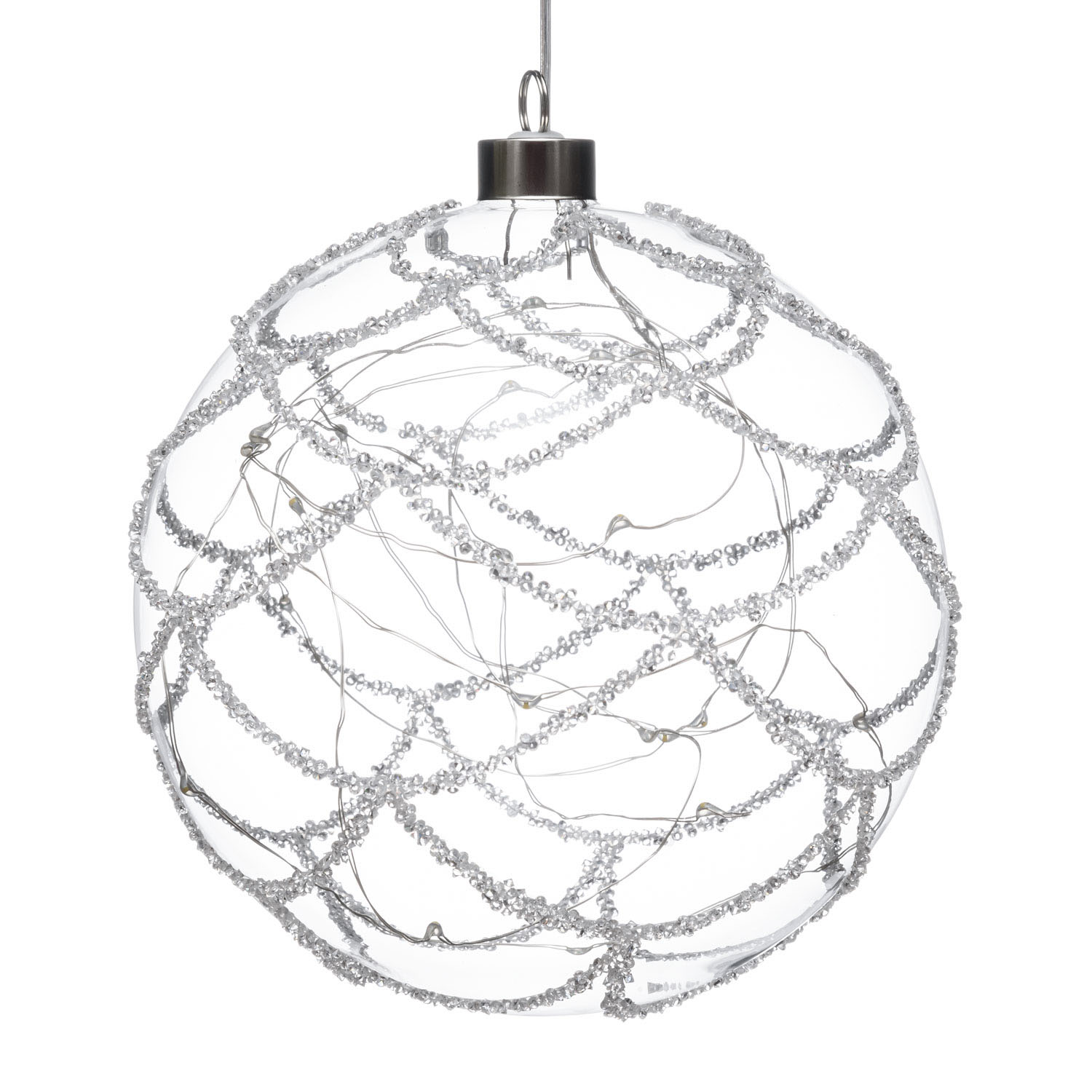 Produktinformationen "LED Glas Sphere Kugel mit Strass Steinen Silber 15 Cm - Timer + Fernbedienung"